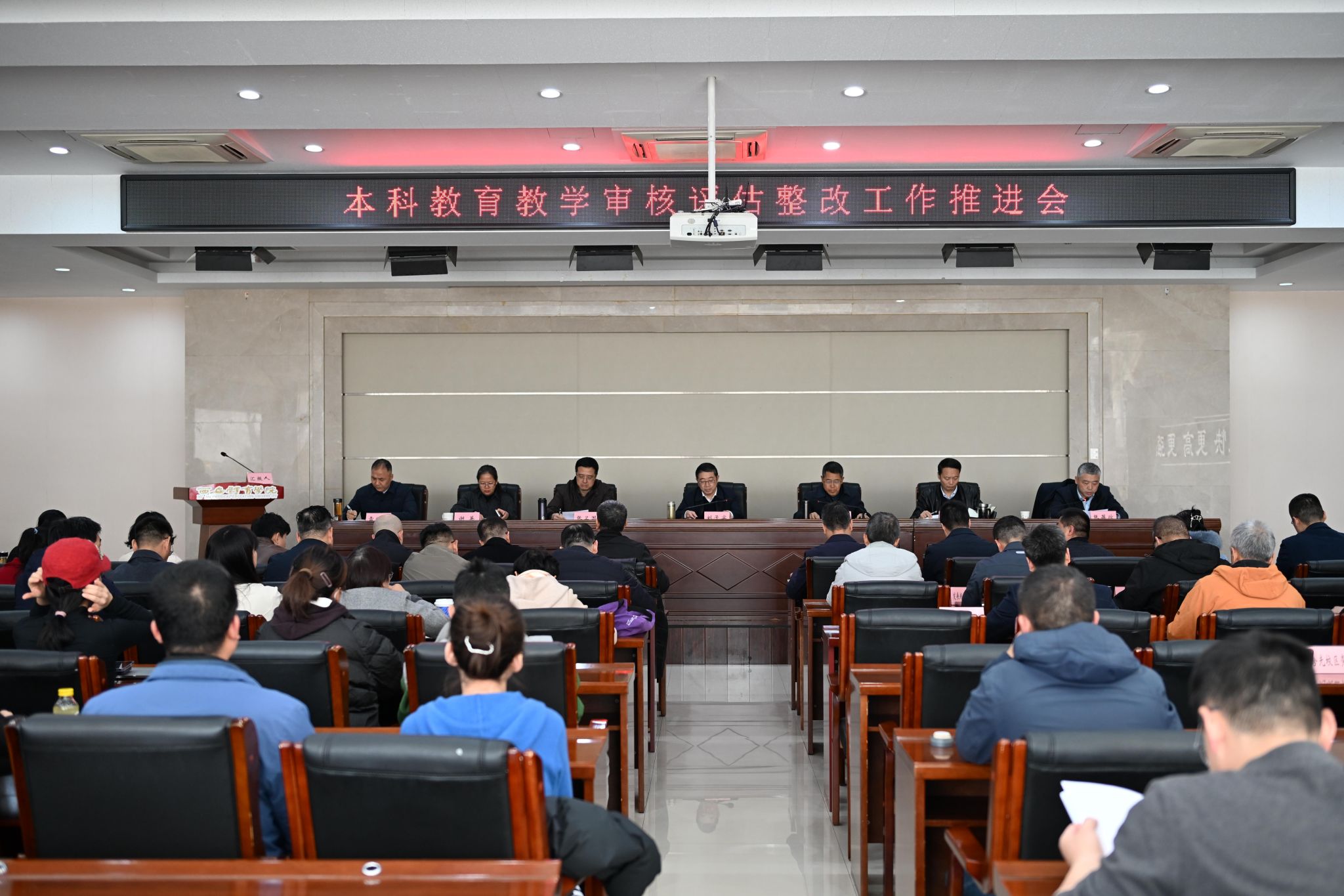 为认真落实专家组整改意见,扎实推进本科教育教学审核评估整改工作,11月18日,beat365官网召开本科教育教学审核评估整改工作推进会。党委书记刘子实,党委副书记、纪委书记、监察专员杨芳乾,党委副书记张卫国、马海涛,副校长谢英、张葆欣、雷振华出席会议。各处级部门、各二级学院党政负责人和相关部门全体人员参加会议。