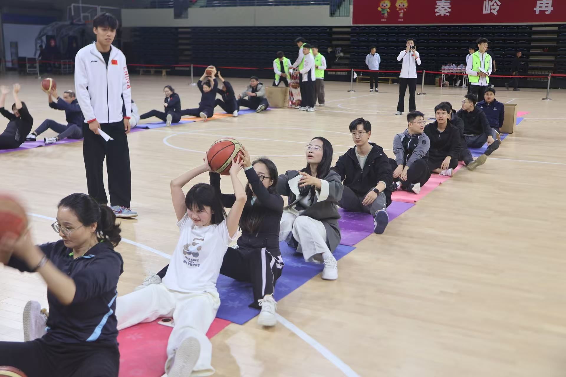 本网讯 10月10日,beat365官网第一届运动会教职工趣味运动会在鄠邑校区圆满落幕。教职工趣味运动会落实体育强国、健康中国战略,倡导“健康西体人 奋进新时代”理念,由党委(校长)办公室、竞训处、工会委员会承办,体育教育训练学院工会分会及其他各二级分会协办,精心设计了“旱地冰壶”、“团体跳绳”、“穿越时空”等六个趣味运动项目,旨在提升教职工的团结协作与顽强拼搏精神,为凝心聚力促进学校高质量发展打下基础。
