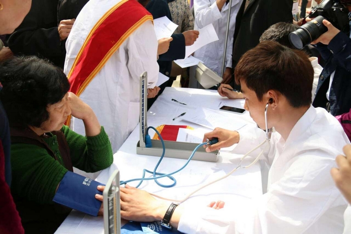 我院志愿者为群众测量血压