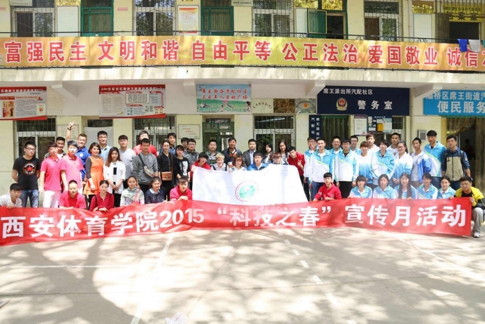 本网讯 4月15日,由我院科研处、团委、健康科学系等部门联合举办的“科技之春”宣传月活动走进灞桥区席王街道办汽配社区。共青团西安市灞桥区委员会副书记刘舒辉、西安市灞桥区汽配社区书记兼主任刘春宁,我院学工部副部长(团委负责人)郑璐、副书记王鹏参加了此次活动。