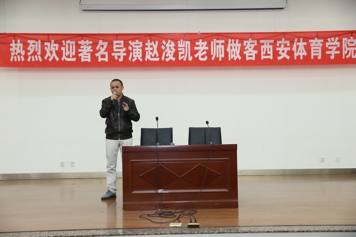 下午4点,赵浚凯先生在教学楼五楼报告厅为武术系、体育艺术系、体育传媒系共500余名师生做了《从“亮剑”到“大刀记”——“亮剑精神”在当代大学生人生选择中的价值》的专题讲座。