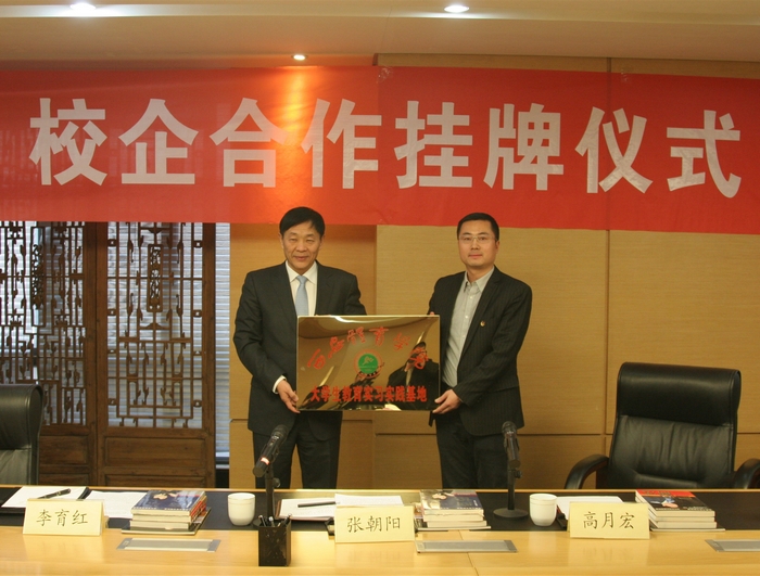 高月宏同志与丹尼尔集团总裁王国庆为大学生教育实习实践基地揭牌