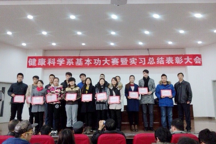 本网讯12月25日,健康科学系在教学楼五楼报告厅举行第三届专业知识与实践技能基本功大赛暨实习总结表彰大会。教务处长刘新民、副处长朱军,健康科学系负责人、该系教师代表及300余名学生参加了大会。