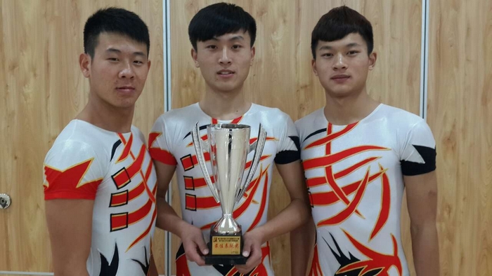 由体育艺术系健美操教研室教师王猛带领的健美操队参加了大学生体育院系A组的男子单人操和男子三人操比赛。其中,周锦、刘德宏、李春风(均为体育艺术系2014级健美操专项学生)获得男子三人操冠军并荣获现场“最佳表现奖”。
