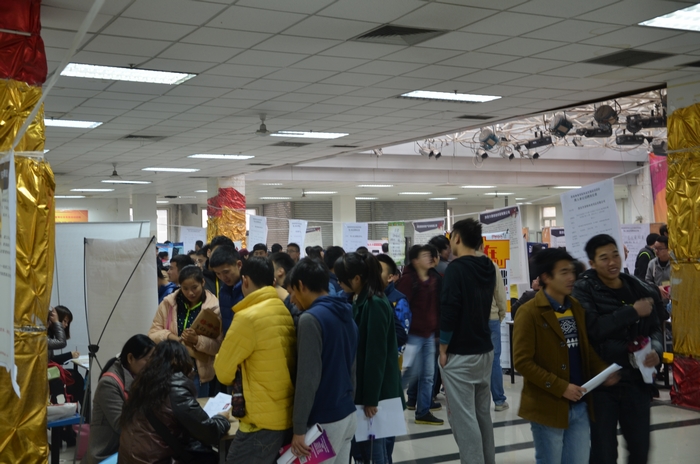 为让更多的毕业生参与招聘会,学生处就业中心不仅通过广播、宣传栏、海报等方式发布招聘会讯息,更借助微信、朋友圈、公众号等新型传播平台发布招聘信息,帮助学生了解招聘会和招聘企业概况。