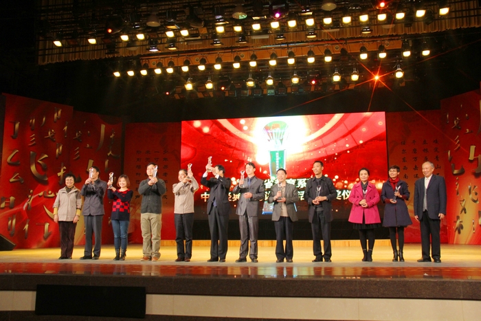 相关领导为一等奖获奖单位颁奖,我院领奖者(左四)上台领奖