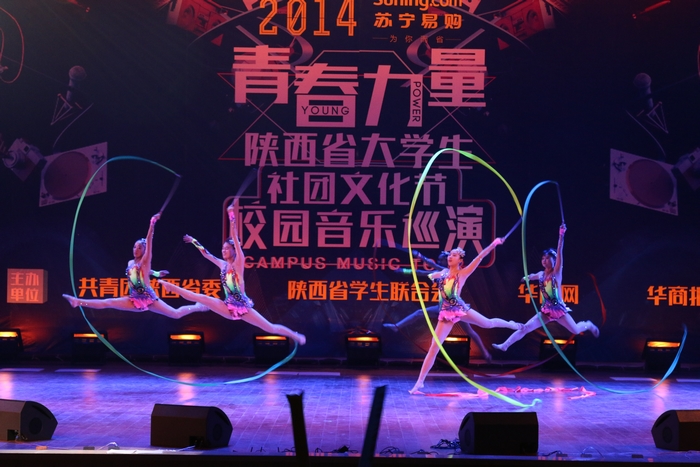本网讯11月7日晚,由共青团陕西省省委、陕西省学生联合会等联合举办的“青春正能量,演绎中国梦——2014陕西省大学生社团文化节”校园音乐巡演第二站在我院大学生活动中心举行。共青团陕西省委学校部宋薇娜、我院团委书记高月宏,全国体育院校教学督导组的专家成员们以及来自陕西省各高校的团委老师和同学们观看了晚会。