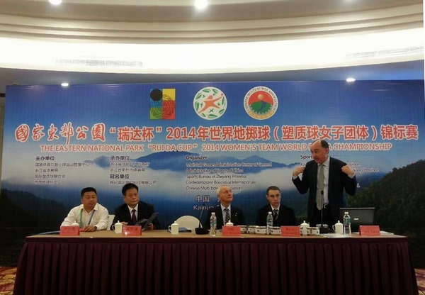 本网讯10月18日至26日,2014年世界地掷球(塑质球女子团体)锦标赛在浙江省开化县体育馆举行。世界地掷球锦标赛是国际地掷球协会主办的国际高水平赛事,每四年举办一次。这次是该项赛事首次在中国举办。共有来自中国、美国、意大利等20个国家和地区的21支球队参加本次比赛。我院地掷球国家级裁判雷甲谋同志担任仲裁,索文涛和李大华同志担任裁判员。