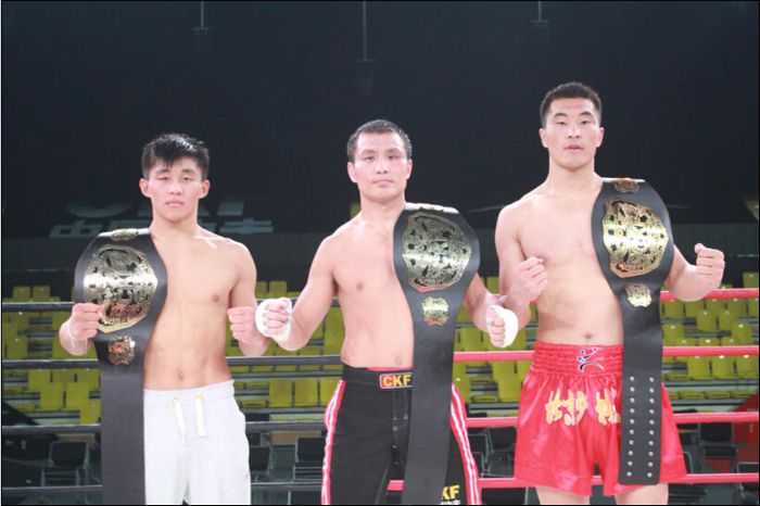 本网讯 2014年CKF“中国功夫争霸赛”迁安站日前圆满落幕。此次比赛共有来自俄罗斯、瑞典、法国、巴西、哈萨克斯坦、塔吉克斯坦、泰国、巴基斯坦、港澳台地区和国内15家知名俱乐部的选手参加比赛。我院共派出13名实力强劲的队员参加此次比赛,其中多场比赛的冠亚军争夺均为我院队员。最终经过激烈角逐,敖特根·巴特尔获75KG级冠军、青格乐获无差别级冠军、赵志康获得65KG级冠军。