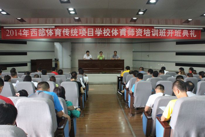 本网讯7月6日,2014年西部体育传统项目学校体育师资培训班在我院如期开班,来自内蒙古自治区、陕西省体育传统项目学校的100名体育骨干教师将参加为期一周的集中培训。