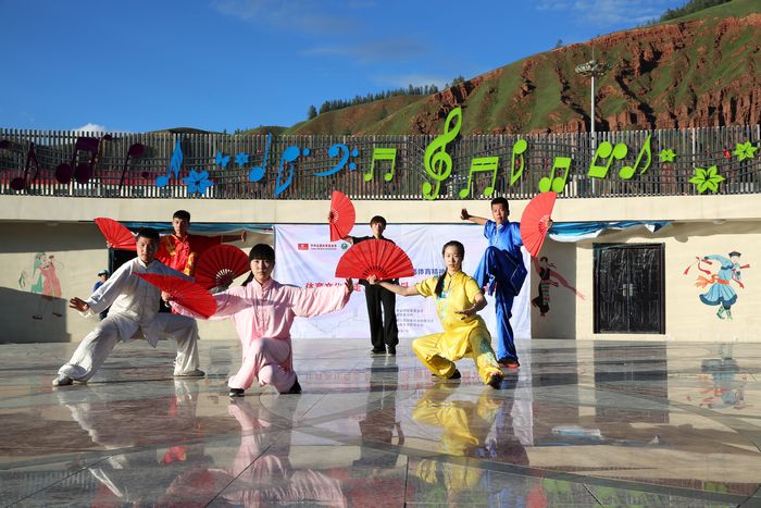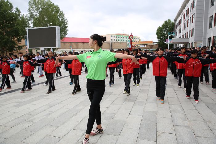 志愿者向门源一中的学生教授拉丁舞动作