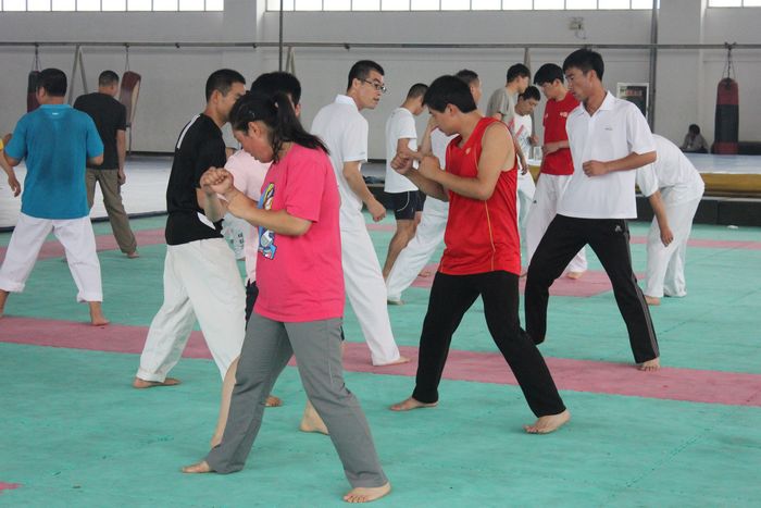 培训学员在练习跆拳道