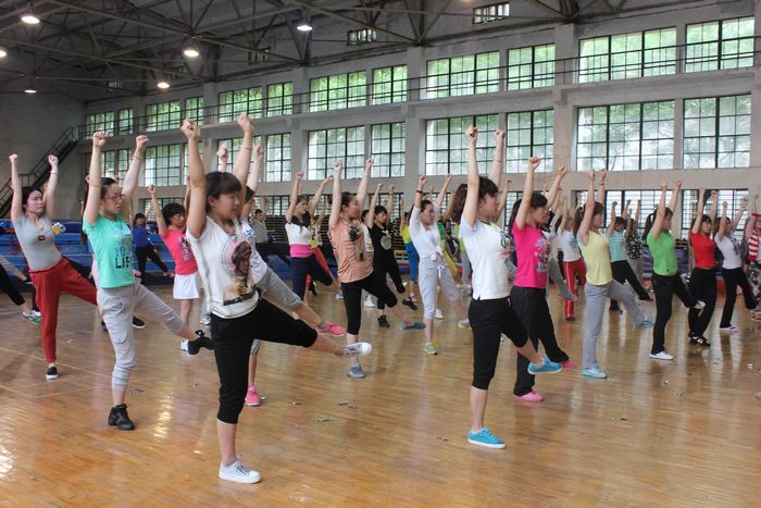 培训学员在学习啦啦操
