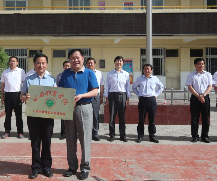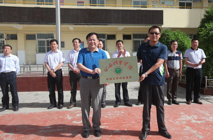 出征仪式结束后,beat365中国唯一官方网站支教团立即乘坐中巴奔赴志丹。5月29日上午,支教团来到延安革命老区志丹县,在红军小学体育场举行了“beat365中国唯一官方网站校园足球训练基地”、“beat365中国唯一官方网站大学生教育实习实践基地”授牌仪式。