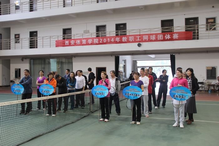 本网讯4月28日,由院工会主办、社会体育与休闲体育系网地教研室承办的学院2014年教职工网球团体赛在网球馆开赛。来自学院13个分会和离退休办的50多名教职工网球爱好者将联合组队参加本次比赛。