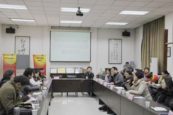 本网讯 由陕西省图书馆学会、陕西省社会科学信息学会、陕西高校图工委主办的“陕西图书情报2013年第3期主题学术沙龙——西安属地高校图书馆免费开放服务社区模式探索”于12月26日下午在我院图书馆举行。