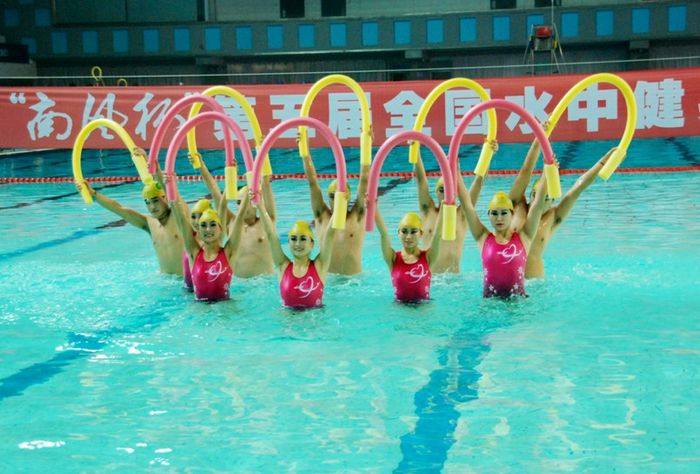 水中健身操是一项新兴的时尚健身运动,利用水的浮力、阻力、传热性及水流按摩等特性,提高了水中健身的趣味性和美学效果,对舒缓精神压力、塑造形体、调节身姿具有明显效果,是适合各类人群的运动健身项目。