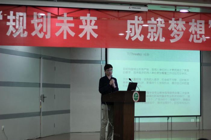 本网讯11月28日,由学生处就业中心主办的首届“规划未来成就梦想”大学生学业(职业)规划大赛决赛在教学楼一楼举行。本次大赛是本学期学生处组织开展的校园文化系列活动之一,旨在帮助广大学生明确奋斗目标,提高学业、职业规划能力。学院有关职能部门和系部负责人出席了活动,教务处副处长朱军、大学生就业中心主任李育红、体育教育系辅导员樊敏、体育传媒系辅导员郭维刚、武术系辅导员王华和经管系教师王芳担任评委,学院督导组雷志萍等四位专家教授应邀观看比赛并为获奖选手颁奖。
