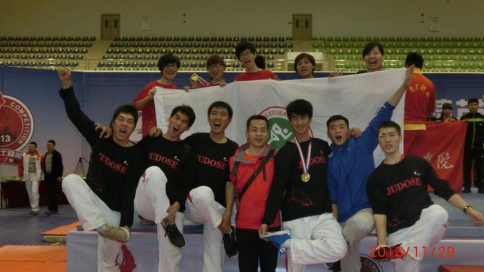 我院脚斗士代表队男女10名队员在领队武术系主任马文国和主教练李晓毅带领下,挥洒汗水,倾力一搏,获得个人赛2金1银2铜3个第五,团体赛男团第三和团体总分第三的好成绩,李晓毅再次获得“优秀教练员”称号。创造了我院脚斗士项目有史以来最好成绩。