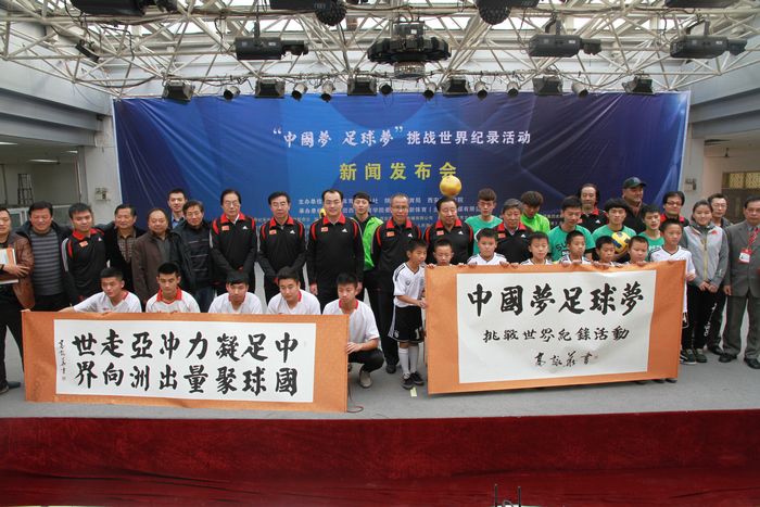 随后,参会各位领导及嘉宾为本次活动开球,世界冠军宫金杰,足球明星江洪、王尔卓,陕西省球迷协会、文化界相关人士对本次活动进行了祝贺,陕西著名书法家高咏华先生为本次活动赠送了内容为“中国梦 足球梦”“中国足球 凝聚力量 冲出亚洲 走向世界”的两幅书法作品,我院大学生带来了精彩的花式足球表演,并与西安爱子足球俱乐部小球员联合进行了颠球表演。