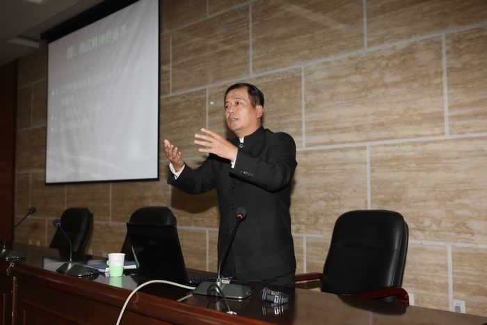马文国主任从武的本质和尚武精神的内涵出发,用西方“兵圣”克劳塞维茨的军事学理论和毛泽东的军事思想分析战争的特点,指出尚武精神是提高军队战斗力和战斗作风的重要因素,在战争中起着至关重要的作用。他根据自己多年来对传统武学和古典武艺的研究,对军队如何蓄养尚武精神提出建议。他指出,尚武精神的核心是刚健强大、忠诚担当、视死如归、舍生取义。具有尚武精神和亮剑精神的军队是强大的,才能在战争中勇打胜仗,能够承担捍卫国家民族尊严和保家卫国的神圣使命。以军旅武艺为主要内容的古典武艺是beat365中国唯一官方网站的特色课程,军人通过训练,可以掌握攻防技能,蓄养尚武精神,强壮军威。