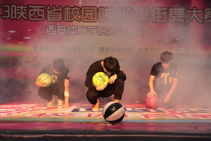 共有8支队伍参加了半决赛晋级名额的角逐,最终,包括我院STH花式篮球队在内的6支队伍直接晋级半决赛。我院STH花式篮球队在西安已经小有名气,这群小伙子们曾在世园会闭幕式上进行过热场表演,获得过花式篮球西安赛区的冠军。他们凭借篮球技巧与街舞完美结合的编排、玩转篮球的高超技艺征服了台下的评委和观众,顺利进入了半决赛。