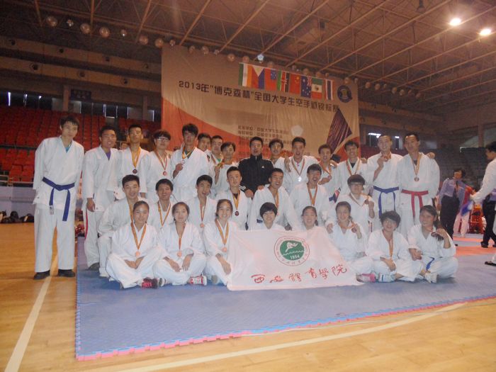 本网讯10月18至20日,由中国大学生体育协会空手道分会主办,湖南省衡阳市体育局承办的2013年全国大学生空手道锦标赛在衡阳市体育馆举行。本次比赛包括香港大学、香港浸会大学在内共有来自全国23所高校400余名运动员、教练员、领队参加。我院派出了由武术系主任马文国为领队,重竞技教研室马波为主教练的29名队员参加角逐(队员分别来自运动训练系、体育教育系、武术系、体育经济与体育管理系、健康科学系、体育艺术系以及研究生部)。