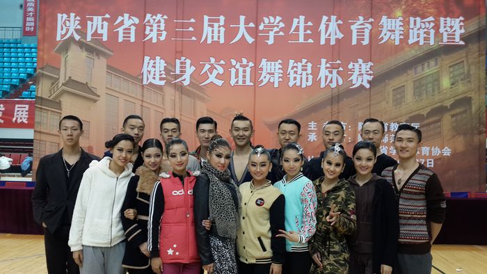 本网讯10月27日,我院体育舞蹈代表队派出了35对70名选手参加了由陕西省教育厅主办,省学生体育学会、陕西师范大学承办的第三届大学生体育舞蹈暨健身交谊舞锦标赛。在体育艺术系舞蹈教研室杨占军副教授的带领下,经过两个单元的激烈角逐,我院体育舞蹈健儿共获得14项冠军、9项亚军和9项季军,其中体育艺术系2011级舞蹈三班学生方鑫、侯梦倩更是一举夺得大学专业院校组摩登5项决赛、大学专业院校组拉丁5项决赛和健身交谊舞7项全能决赛三个项目的冠军。