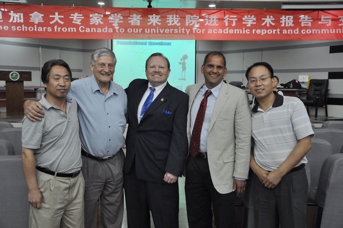 加拿大温莎大学体育学院院长Michael A.Khan教授、加拿大西安大略大学奥林匹克研究中心主任R.K.Barney教授、社会体育与休闲体育系主任郑文海教授、副主任杨建设教授出席了本讲座。