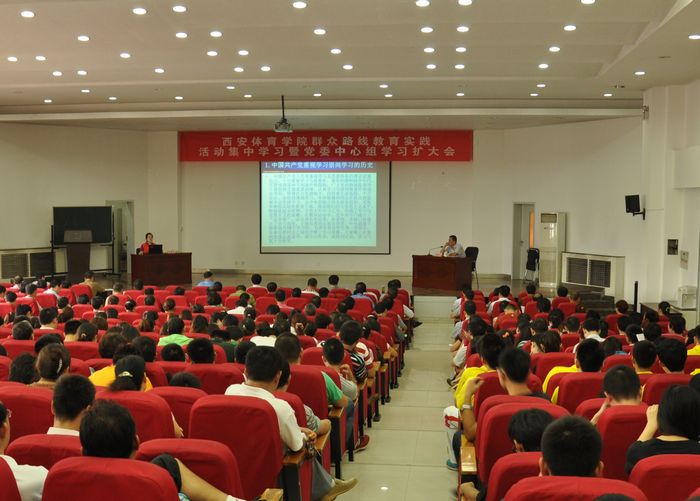 本网讯 9月18日上午,我院在五楼报告厅举行群众路线教育实践活动集中学习暨党委中心组学习扩大会,陕西省委党校科社教研部李晓燕教授为我院师生作了题为《重视学习善于学习 崇尚学习——弘扬共产党人的优良传统和作风》的讲座。院领导、党委委员、机关和系部干部、学生代表共四百余人到场聆听。党委委员、组织部部长刘新平主持了学习会。