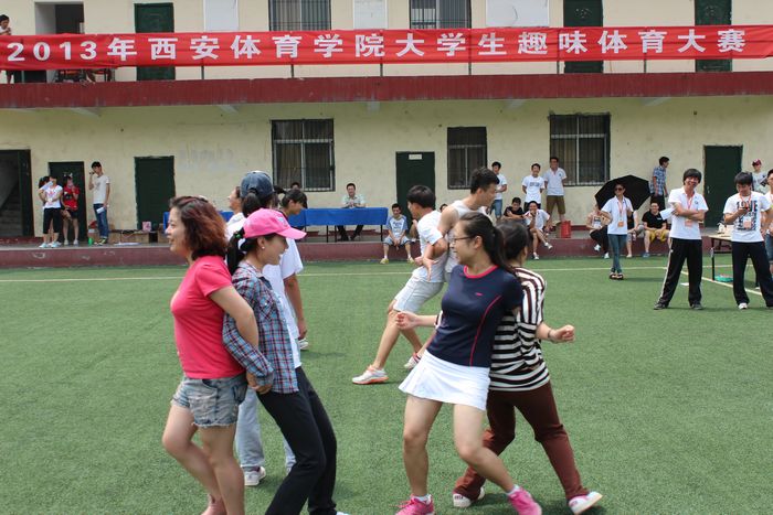 社会体育与休闲体育系经过为期一周的认真筹划,精心组织,为本次比赛成功举行提供了保障。趣味体育大赛设有“瞬间转移”、“心心相印”、“同心列车”等五个项目,极大吸引了学生的兴趣,不仅报名、参与人数多,而且现场火爆热烈、同学们热情高涨。