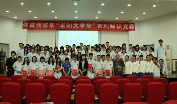 本网讯为充分提高学生的学习积极性,拓宽知识面,5月12日晚,体育传媒系2012级在新教学楼五楼报告厅举办了“求知大学堂”百科知识竞赛,该系党总支书记、辅导员、学生共计二百余人参加了此次活动。