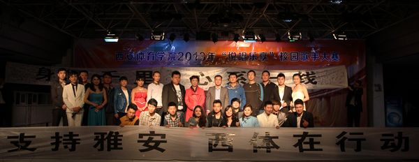 在比赛开始之前,现场还循环播放了选手们为雅安人民祈福的宣传视频,向灾区人民传递西体学子的的真诚祝福。