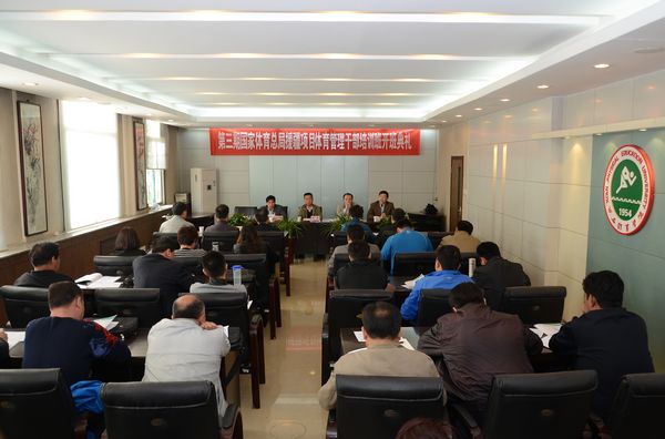 本网讯4月11日,由国家体育总局人事司对口援助、新疆自治区体育局主办的第三期体育管理干部培训班在我院开班。我院副院长周里、国家体育总局人事司科技干部处副处长王赟、新疆体育局人事处处长龙建贵出席了开班典礼并讲话,来自新疆各地、州、县的30名体育管理干部参加了开班典礼。