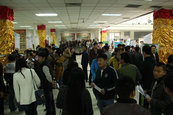 本网讯3月16日上午,由学生处主办的2013届毕业生校园综合招聘会召开。此次招聘会与大秦人才网联办,吸引了学校、事业单位、银行、地产、教育机构、企业、五星级酒店等七十五家省内外用人单位参加,共提供就业岗位一千五百余个。陕西省教育厅学生处副处长韩公营、西安市人才中心副主任吴强亲临现场了解本次招聘会的开展情况,听取了现场用人单位的意见和建议。我院各系领导及辅导员均到场参会,了解用人单位的岗位需求情况。