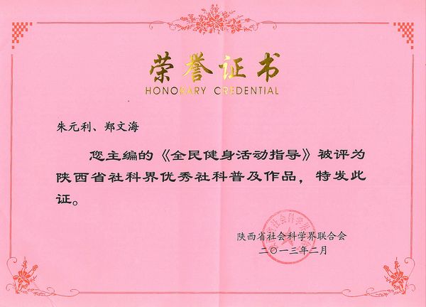 会议总结了2012年工作,安排部署了2013年工作要点,表彰了优秀科普读物和优秀科普工作者。我院朱元利、郑文海教授主编的《全民健身活动指导》(五册,由陕西科技出版社出版)被评为全国优秀社科普及作品和陕西省社科界优秀社科普及作品受到了大会表彰。