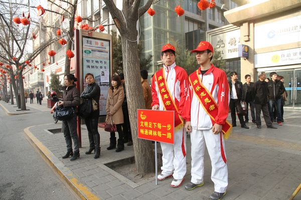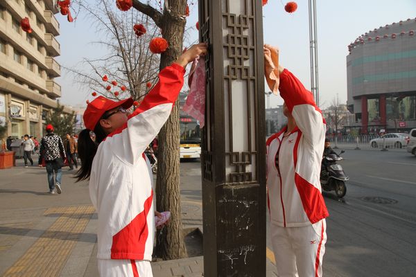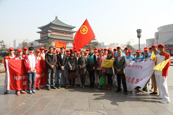 本网讯今年是毛泽东同志发出“向雷锋同志学习”50周年。为响应团省委“青春雷锋耀三秦”的号召,3月4日清晨,院团委组织开展本学期第一次升旗仪式暨“争当雷锋精神传人”的倡议活动。3月5日上午,团委组织社体系团总支、体育系11级团总支、艺术系12级团总支及院学生会共50名志愿者,赴南大街钟楼饭店附近进行卫生清洁以及向过往行人发放绿色环保袋、维护公交乘车秩序等爱心服务工作。活动期间团省委领导对我院志愿者进行了慰问,省内媒体也对活动进行相关报道。3月6日上午,院学生会成员组成的校园环保队也在我院校园主干道进行了卫生清洁。