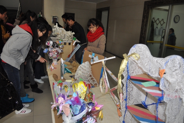 本网讯 11月12至19日,为提高大学生环保意识和动手能力,呼吁同学们从身边小事做起,实践低碳环保生活方式,健康科学系举办了“宿舍环保创意作品大赛优秀作品展”。展出的作品都是同学们发挥自己的想象力亲手设计制作的环保创意作品,其中精致的易拉罐椅子、瓶盖魔蝎、创意小灯笼以及趾高气扬的羽毛球公鸡等作品受到了师生的一致好评。