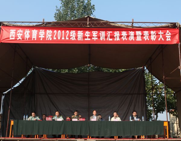 9月30日上午九时,我院2012级军训汇报表演暨表彰大会在校本部第一田径场及沣峪口校区同时举行。院长苏明理,党委副书记朱元利、苏义民,副院长雷新声、周里,党委委员组织部长刘新平,相关部门负责人,承训部队及各系负责人参加了大会。