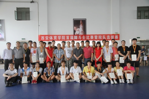 本网讯6月6日,我院首届脚斗士大赛决赛暨院队选拔赛在散打馆打响,副院长周里到场观看。本次大赛共分本部、沣峪校区预赛及决赛三阶段。最终来自体育教育系2011级杨杰、宁伟强、高彦龙、韩彦分获男子轻量级、中量级、次重量级、重量级冠军。武术系郭林松获男子超重量级冠军。体育教育系2009级唐琼、体育教育系2011级刘美华、韩东妮分获女子轻量级、中量级、重量级冠军。