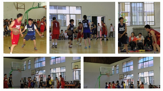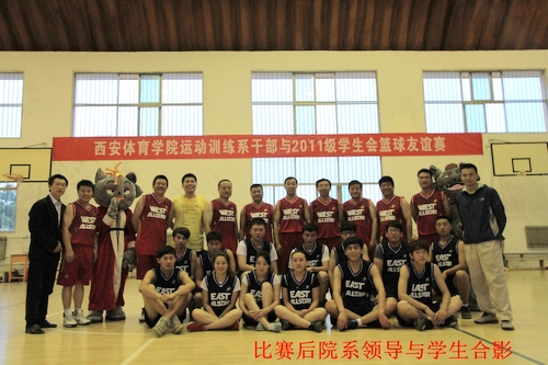 本网讯 5月24日晚,沣峪校区篮球馆座无虚席,现场掌声、呐喊声一浪高过一浪,一场别开生面的院领导与运动训练系师生篮球联赛正式拉开序幕。由党委副书记朱元利、副院长雷新声及运动训练系与沣峪校区管委会党政负责人组成的西部队与运动训练系2011级学生组成的东部队进行了激烈的对抗,最终西部队以一分的优势夺得冠军。