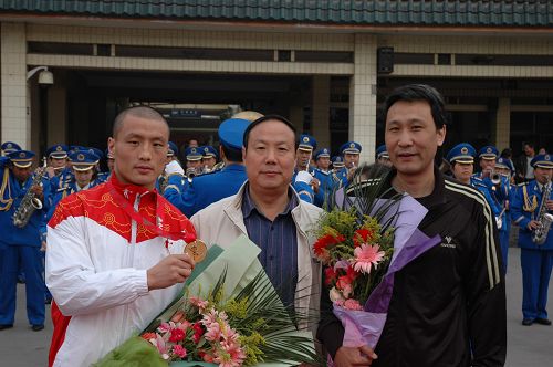 巴特尔与苏明理院长、教练赵学军在一起