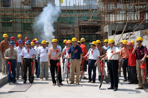 朱元利副书记、雷新声副院长在封顶仪式现场