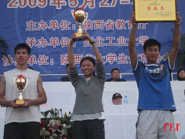 在日前结束的陕西省第三十一届大学生田径运动会上,我院代表队在领队田径教研室主任韩敬及教练许崇高、赵清波、刘占峰、郁成刚、马文新带领下获得男子团体总分、女子团体总分、男女团体总分第一名的成绩,并获得了精神文明奖。