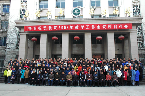 我院2008年教学工作会议于2008年1月14日在学院教学一楼报告厅胜利闭幕。学院领导、各系、部、中心和党政部门负责人,副高级职称以上教师共计250余人参加了会议。