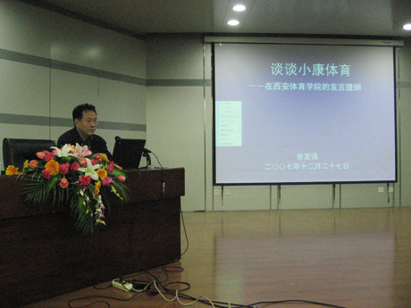 12月27日,全国政协常委、国家体育总局原副局长张发强来到我院,在新教学楼一楼报告厅为我院处级干部及部分师生作了一场题为“谈谈小康体育”的精彩报告,报告会由苏明理院长主持。