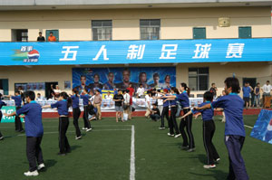 2004年陕西省首届五人制足球挑战赛于5月22日在我院足球场拉开战幕。院长李行勇到场致欢迎词,省体育局吴长岭副局长宣布:2004年“百事球王争霸”五人制足球赛开幕。在数十位足球宝贝的激情表演之后,6场比赛于上午十点整同时开哨。