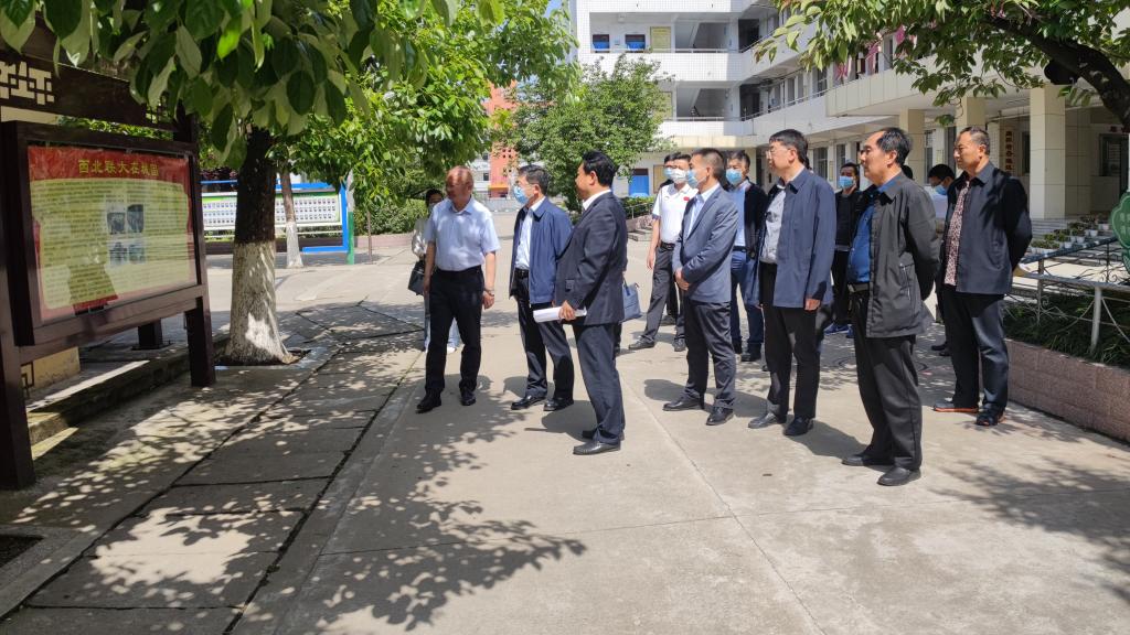 刘子实一行首先到城固一中进行调研走访,参观了位于国立西北联大旧址、体育馆、球类运动场等场地,充分了解了城固一中的教学、场馆设施,校长孙建忠详细介绍了学校的办学历史、办学理念和学校体育教育工作的特色亮点。