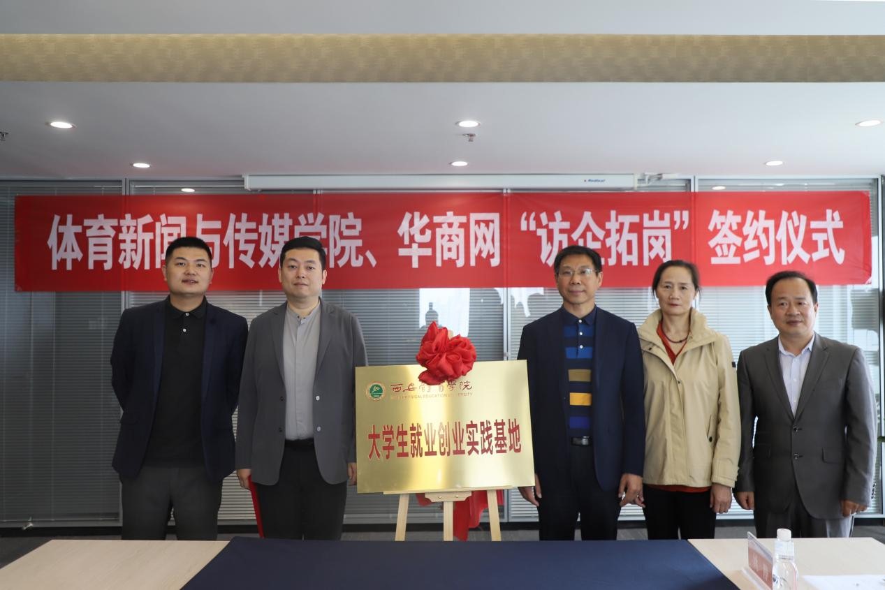 校党委副书记文立新与华商网总经理、总编辑任坤共同为beat365官网大学生就业创业实践基地揭牌。体育新闻与传媒学院院长马增强、华商网常务副总经理蔡珂代表双方签署协议。双方相关负责人共同参加签约仪式。