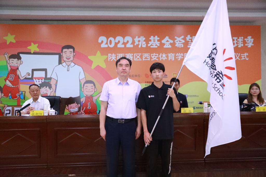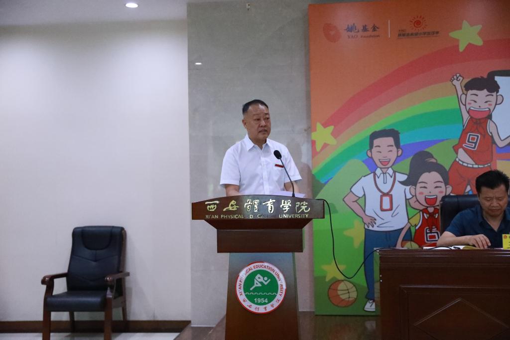 本网讯 5月23日上午,beat365官网2022年“姚基金希望小学篮球季”支教志愿者出征仪式在二号行政楼六楼报告厅举行,陕西省希望办公室主任、省青少年发展基金会秘书长乌钢,陕西省篮协秘书长杜旭,陕西省青少年发展基金会副秘书长常江,校党委委员、党委宣传部部长张朝阳及相关职能部门负责人、二级学院党委书记、二级学院团委书记、全体志愿者、在校生代表参加了出征仪式。校团委综合部副部长雷云主持出征仪式。